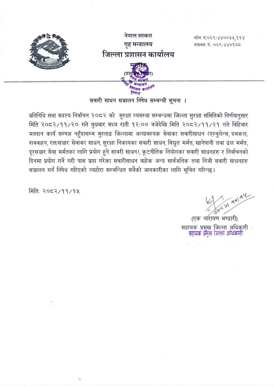 जिल्ला प्रशासन कार्यालय, मुस्ताङ्ग